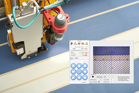 Aeronaut's SiliconEye and Cyclops machine vision systems are essential tools for modern automated cutting systems. Aligning cut profiles with digitally printed material, striped or patterned fabric or irregular shaped hides or scrap material on the cutting table is quick and simple.