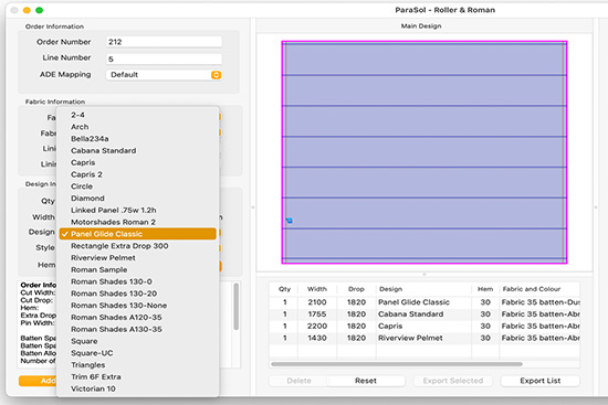 Aeronaut's ParaSol software is the best tool you can buy for the rapid pattern design of almost all shade products from roman and roller blinds to outdoor awnings, screens and café curtains. With over 25 years of development and hundreds of users, ParaSol has window furnishings covered.